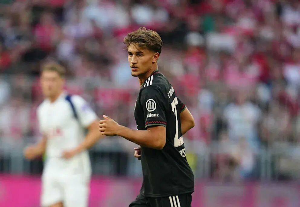 2、比朔夫(20岁,身价4000万欧元,效力于拜仁慕尼黑,本赛季出场22次0球3助)
