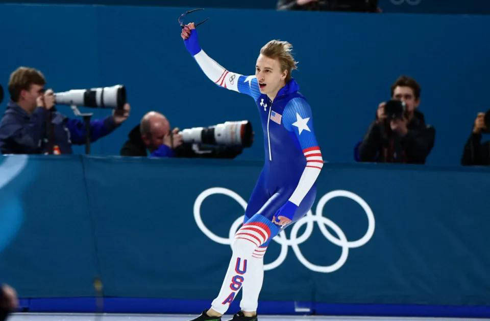 比赛过程中,斯托尔兹与本赛季世界杯排名第三的荷兰选手德波在第14组展开激烈争夺。德波在600米处以40秒25稍占优势,领先斯托尔兹0.27秒。然而到了关键的最后一圈,美国小将展现出了令人瞩目的爆发力,用时仅25秒66,是现场唯一一个最终圈突破26秒的成绩。最终,他以1分06秒28强劲成绩夺魁,刷新奥运纪录足足0.90秒之多。紧随其后的德波也奉献了不俗表现,打出1分06秒78,展示了巅峰实力。